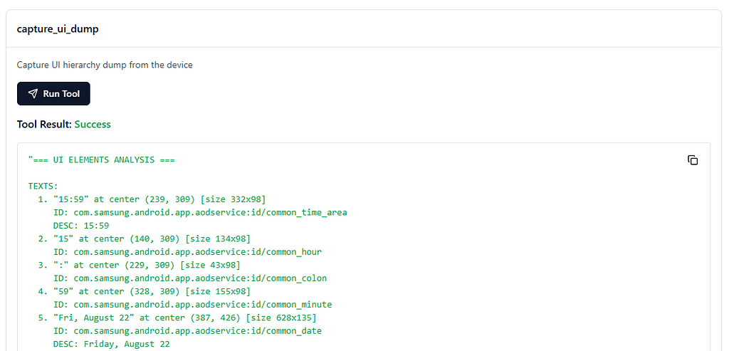 One of the most valuable ADB tools for what we're building is the UI Automator, which returns a detailed XML of the current interface. This makes the use of the adb shell tap x y command much more precise for clicking on specific elements on the screen — for the LLM, XML or Markdown format is more effective than an image.
