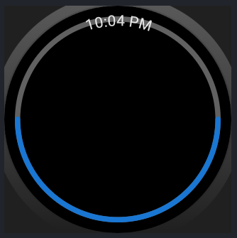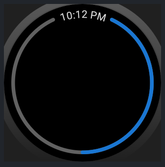 Os ângulos seguem disposição circular padrão. Configure startAngle = 295f, endAngle = 245f para posicionar a barra acima do texto da hora.